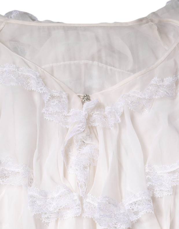 Dolce & Gabbana White Ruffles Lace Long Sleeve Blouse Top