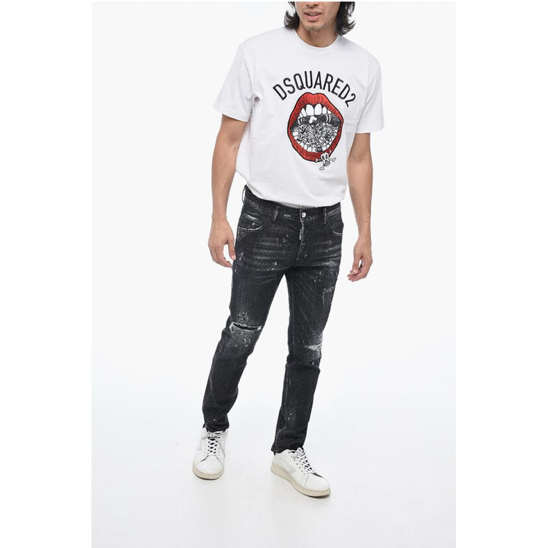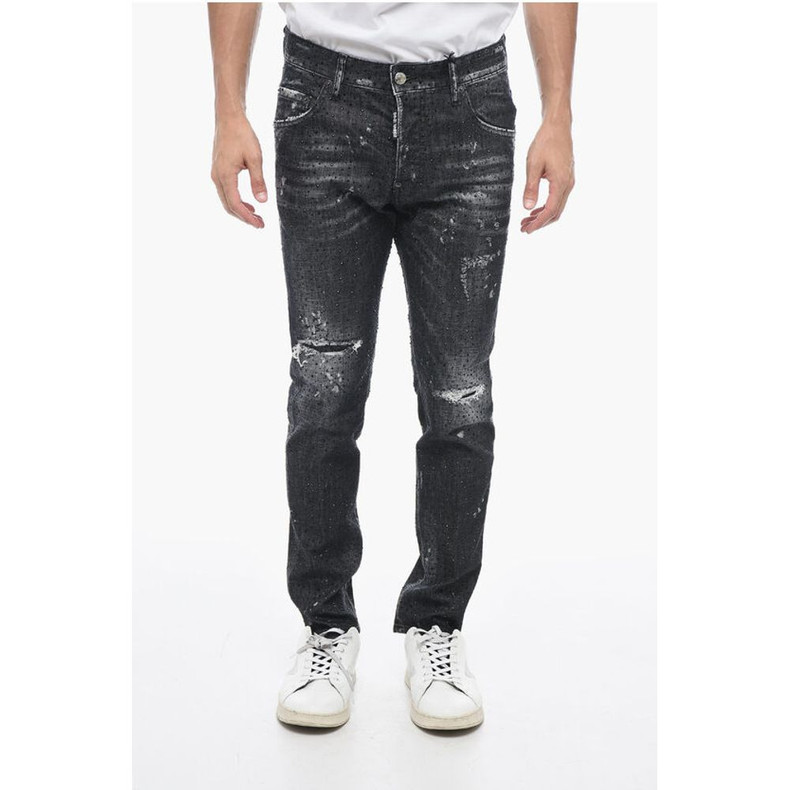 Dsquared² All-Over Rhinestoned Skater Fit Denims 14cm