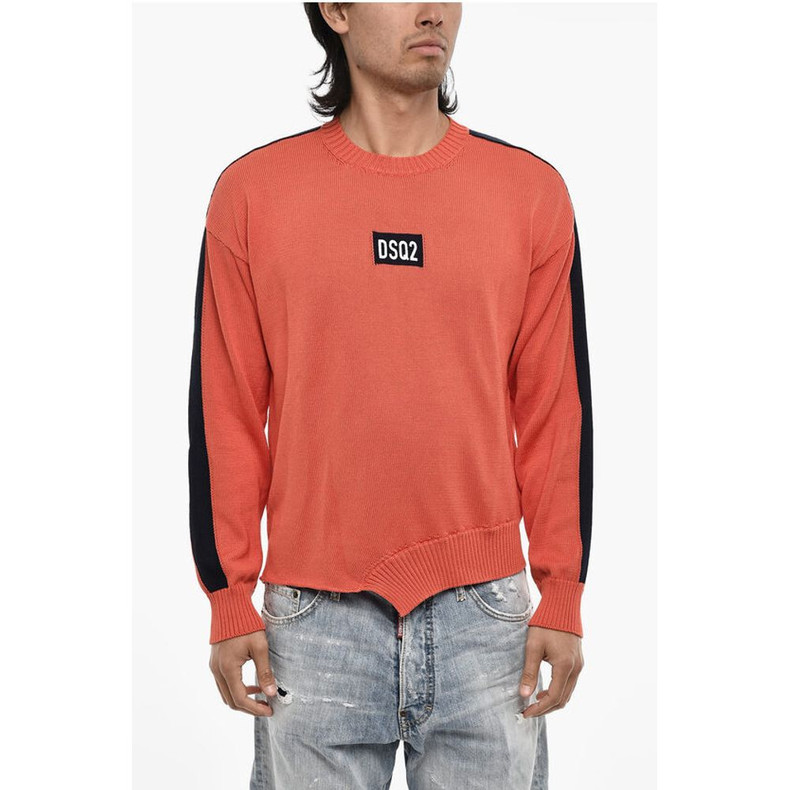 Dsquared² Asymmetrical Cut Crew-Neck Sweater with Contrasting Band