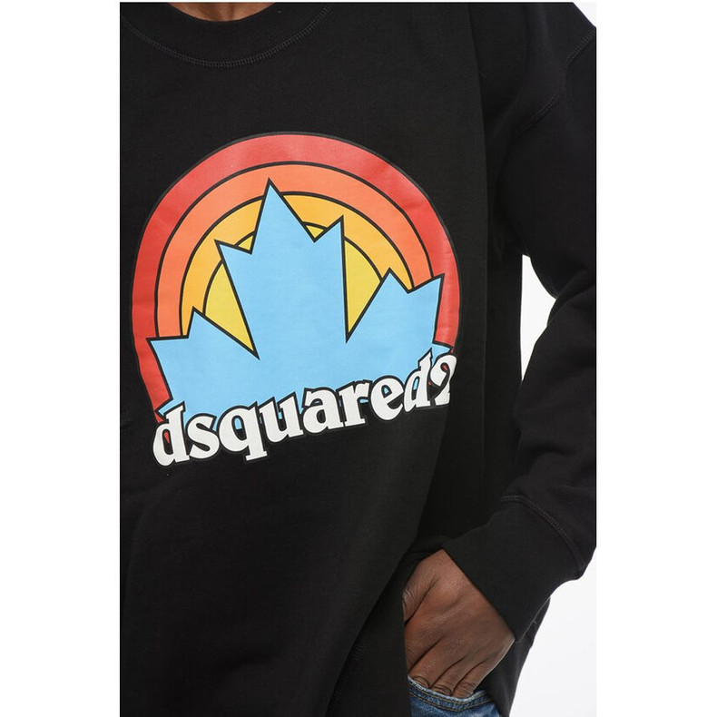 Dsquared² Crew Neck RAINBOW LEAF Fleeced Cotton Sweatshirt