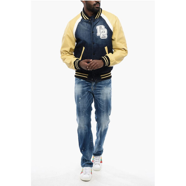 Dsquared² Denim Bomber Jacket with Eco-leather Sleeves