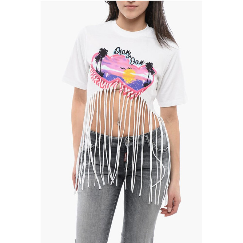 Dsquared² Fringed Hem SPRAY SUNSET Crop T-Shirt