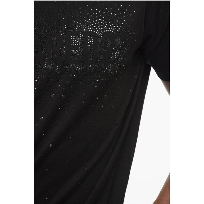 Dsquared² Solid Color Crew-neck T-Shirt Embellished with Rhinestones