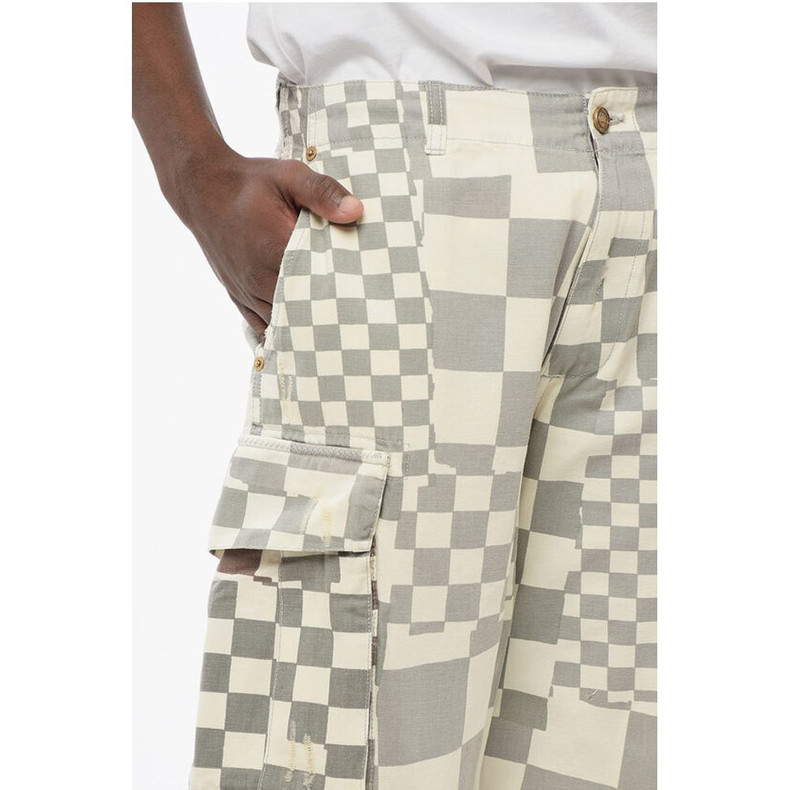 ERL Distressed Effect Two-Tone Checked Cargo Pants