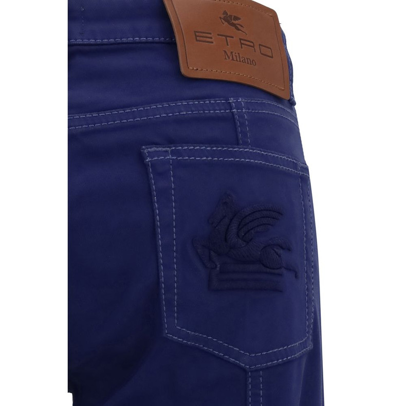 Etro’s Flare Pants reinterpret a timeless classic with the brand’s unmistakable style. Made in the traditional five-pocket pattern, they feature a front zip-and-button closure, waist loops and the iconic embroidered logo on the back, a distinctive detail that enhances their identity.