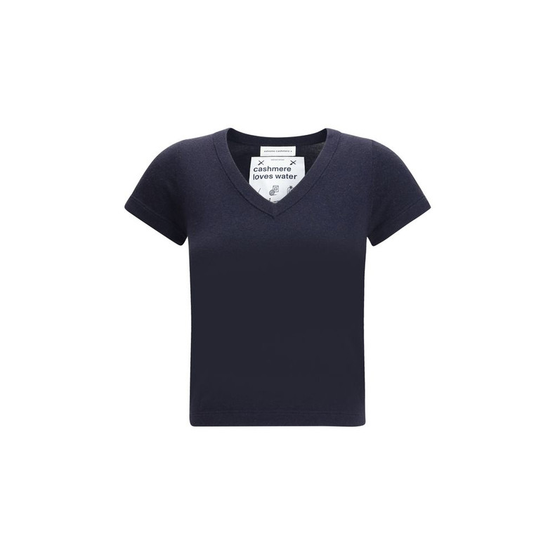 Extreme Cashmere’s knit T-Shirt is a garment with an essential and refined style. Made from a soft blend of cashmere and cotton, it features a ribbed V-neckline and a cropped cut that gives a modern, feminine touch. Perfect for casual-chic looks with comfort and quality.