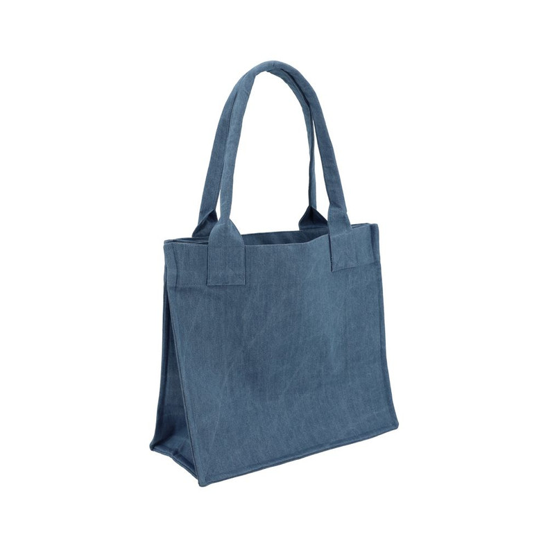 Cotton Tote Bag by Ganni, two top tubular handles, print with contrasting iconic brand monogram detail on front, denim design, single interior compartment.