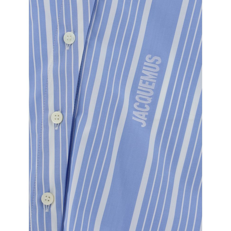 Jacquemus La Chemise Pablo Shirt features a classic collar and an asymmetrical front button closure. A front patch pocket adds practicality, while the striped pattern and the brand’s iconic signature printed all-over give the piece a distinctive and modern touch. A versatile and trendy item, perfect for an elegant and contemporary look.