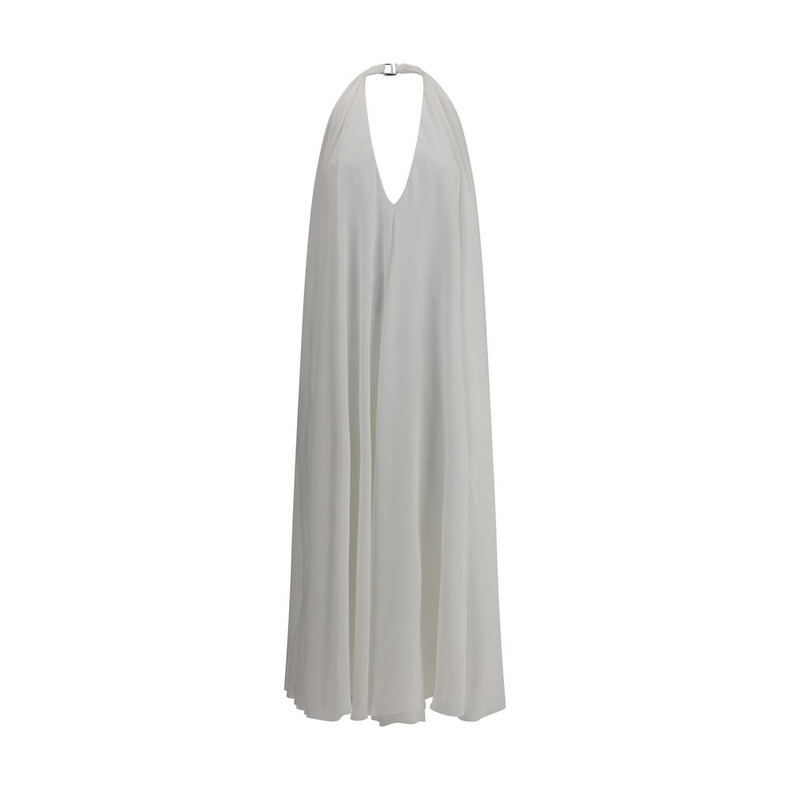 The Rita Long Dress by Jacquemus is an elegant and sophisticated garment featuring a feminine and modern design. The sleeveless V-neck front enhances the figure, while the draping along the sides adds movement and fluidity to the garment. The two side slits give a touch of discreet sensuality, while the polka dot pattern gives the dress a playful and chic air. Perfect for special occasions or a refined look, this dress combines comfort and style with a distinctive note of contemporary elegance.