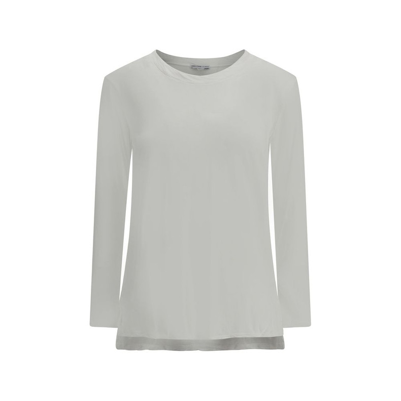 The James Perse cotton Long Sleeve Jersey is an elegant and versatile piece, featuring a classic crew neck and a semi-sheer design that gives a light and sophisticated touch. The side slits add a dynamic and modern detail, while the slim fit flatters the figure, creating a slim and refined silhouette. An ideal piece for casual but sophisticated looks.