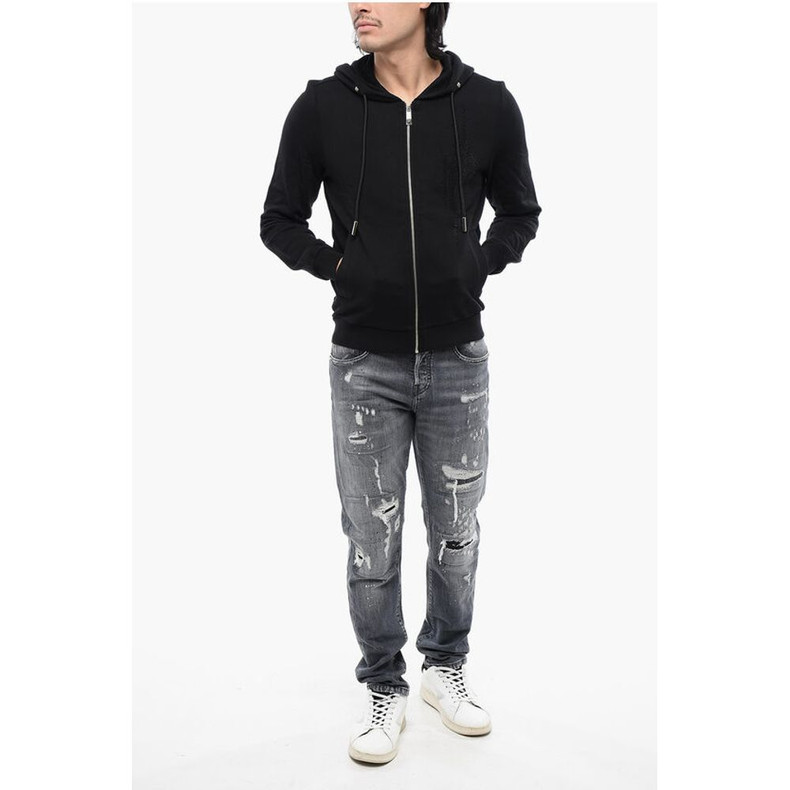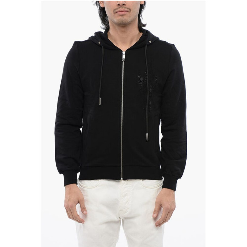 John Richmond Brushed Cotton Zipped Hoodie With Strass Tribal