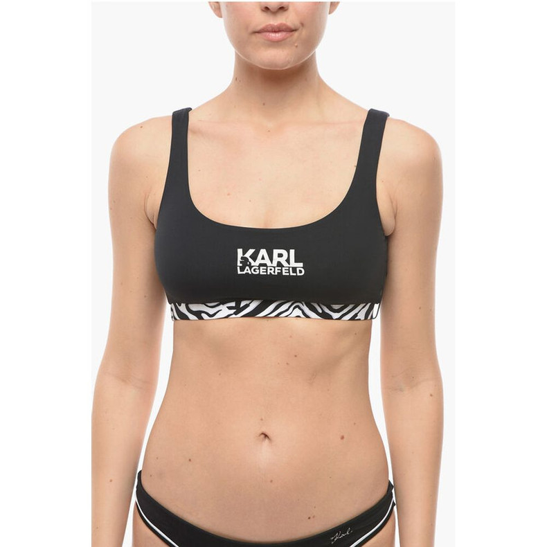 Karl Lagerfeld Plunge Bikini Top With Cut Out and Animal Detail