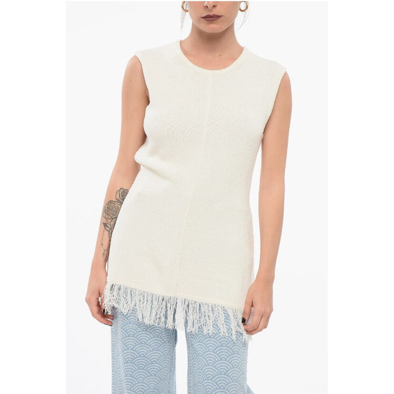 Loulou Studio Sleeveless Top with Fringed Bottom