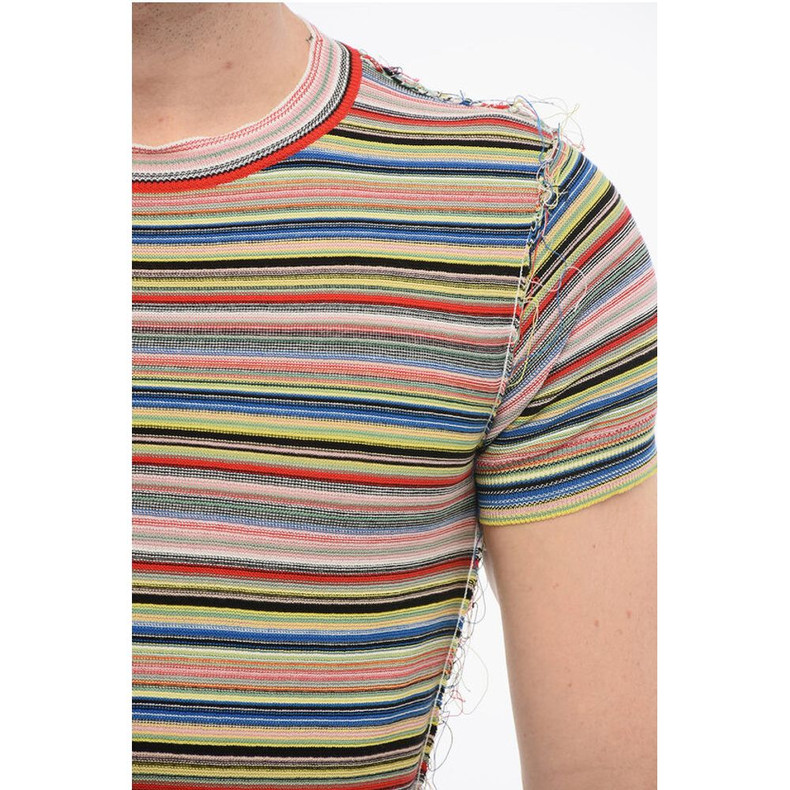 Maison Margiela Short-sleeved REVERSE Crew Neck Sweater with Striped Motif
