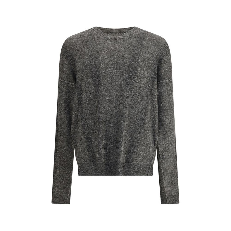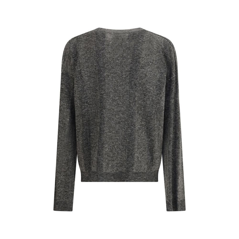 Linen and cotton mélange V-neck oversized Sweater by Maison Margiela, perfect for a relaxed yet refined style. Featuring a mélange pattern, it features a V-neck on the front, brand-typical exposed seams, and ribbed cuffs and hem that define the structure. The oversized fit gives a contemporary and comfortable feel, ideal for casual yet distinctive looks.