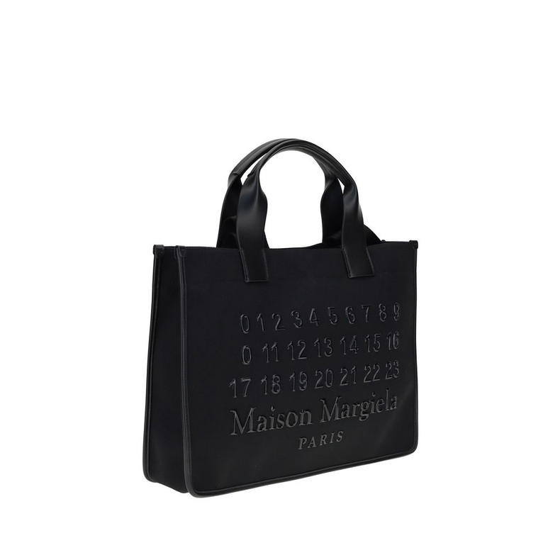 Margiela’s fabric Tote Bag is the ideal accessory for a casual, refined look. Equipped with two leather top handles for optimal comfort, it features the iconic logo on the front to emphasize its authenticity. With a single internal compartment, this bag combines functionality and minimalist design, perfect for everyday use.
