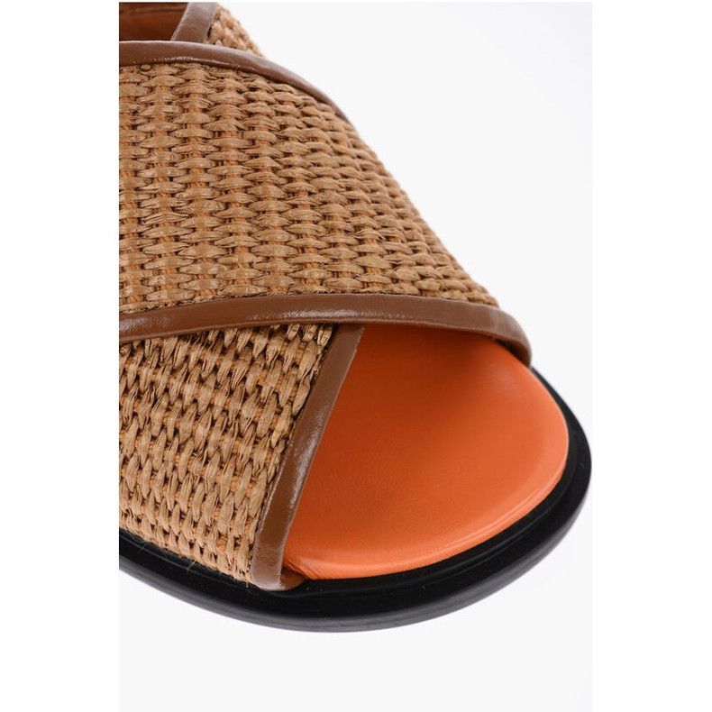Marni Leather and Raffia Sandals with Buckle Closure