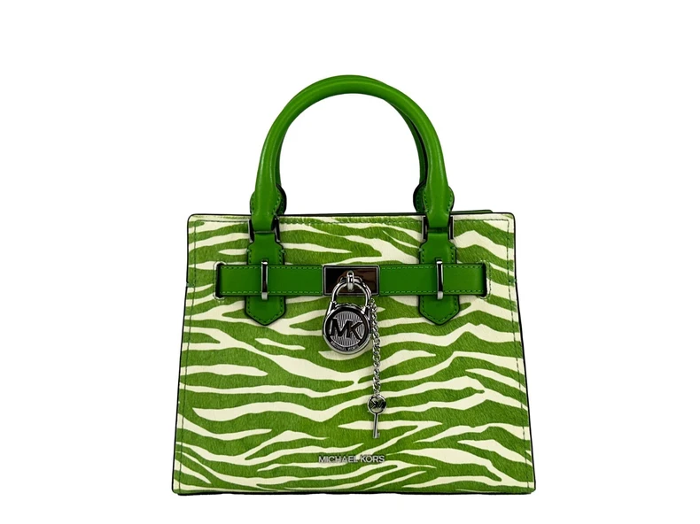 Michael Kors Hamilton Small Leather Zebra Print Satchel Crossbody Jungle Green