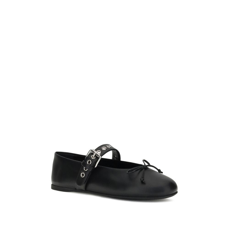 Miu Miu’s leather Ballerinas perfectly combine elegance and comfort. The flat sole provides practicality for everyday wear, while the adjustable buckle strap on the back of the foot offers a stable and secure fit. The design is enhanced by the round toe and front bow, giving a refined and versatile look suitable for any occasion.