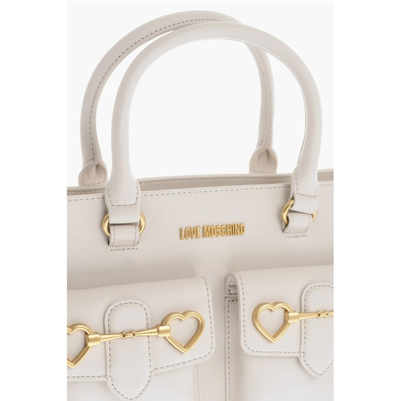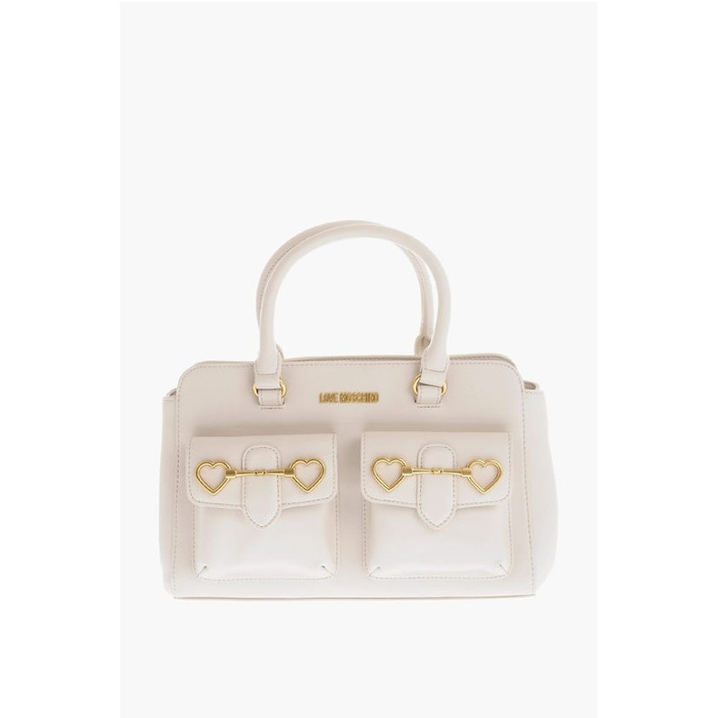 Moschino LOVE Double Pocket Faux Leather Tote Bag With Clamp