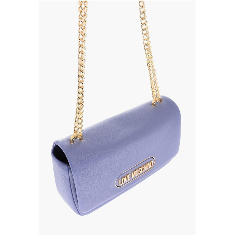 Moschino LOVE Textured Faux Leather Shoulder Bag with Golden Logo