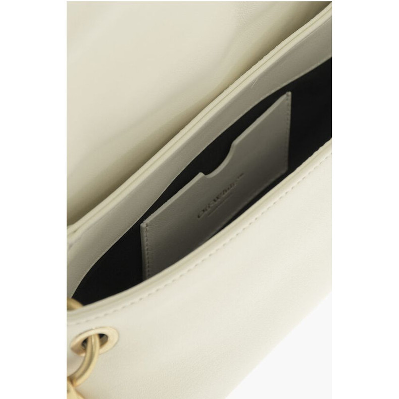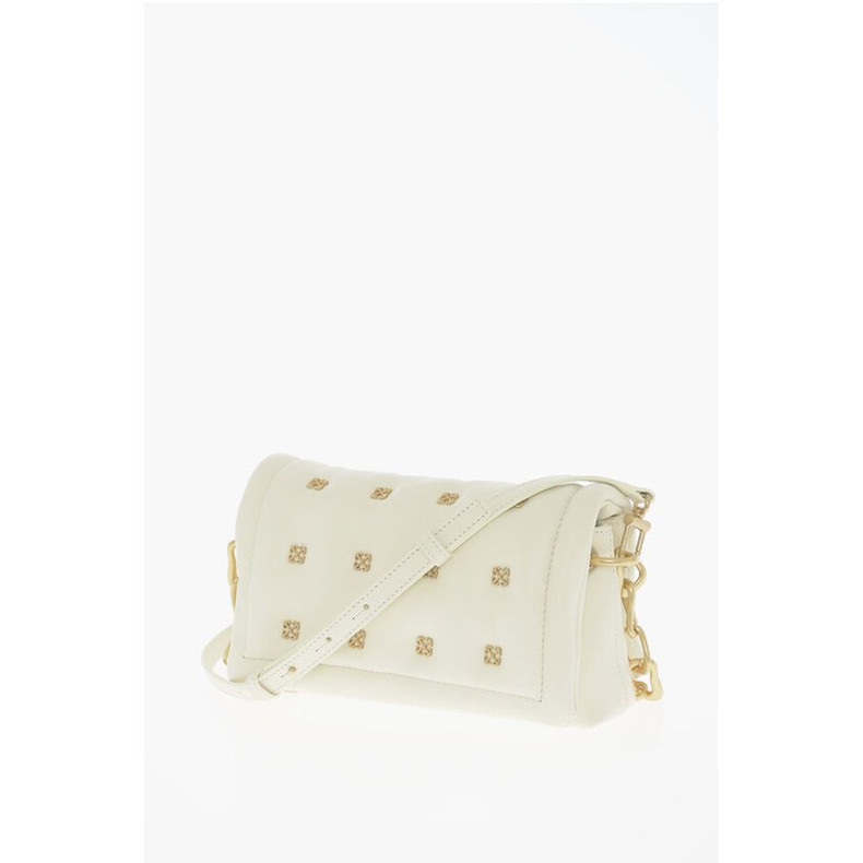 Off-White Leather Shoulder Bag with Iconic Motif in Golden Metal
