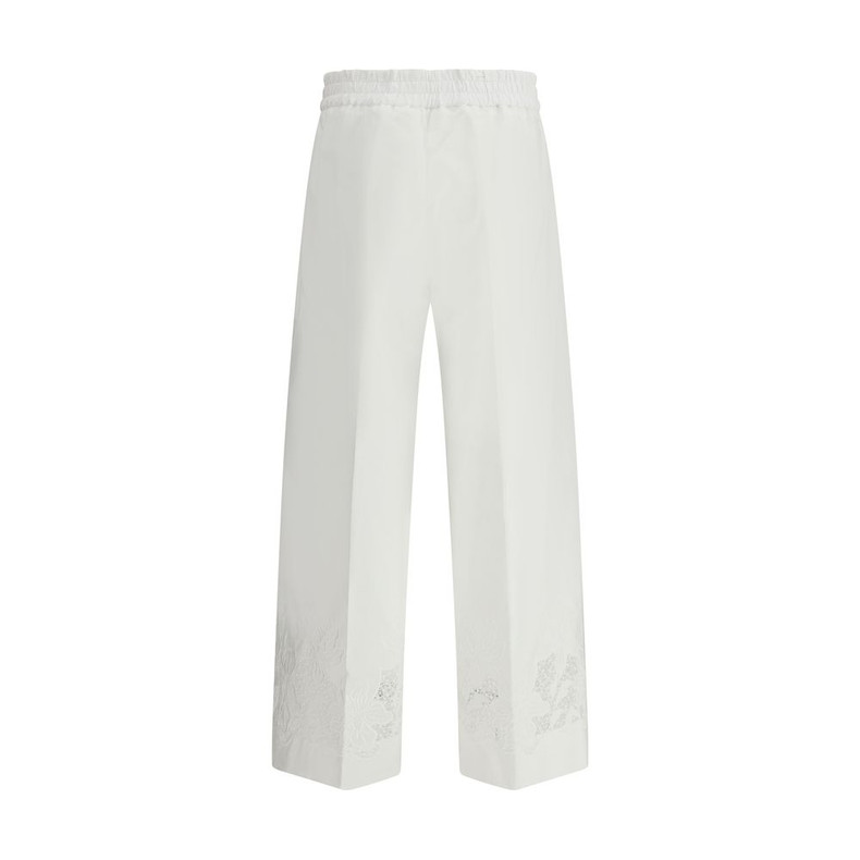 The P.A.R.O.S.H. cotton Pants are an elegant and versatile garment, combining comfort and style. The elasticated waistband on the back ensures a comfortable and adjustable fit, while the two side welt pockets add a practical and refined touch. The wide leg gives a fluid and relaxed silhouette, perfect for a casual-chic look. The floral embroidery on the bottom gives a touch of originality and femininity to the garment, creating a delicate and sophisticated contrast. These trousers are ideal for a spring or summer outfit, which expresses elegance with a touch of freshness.