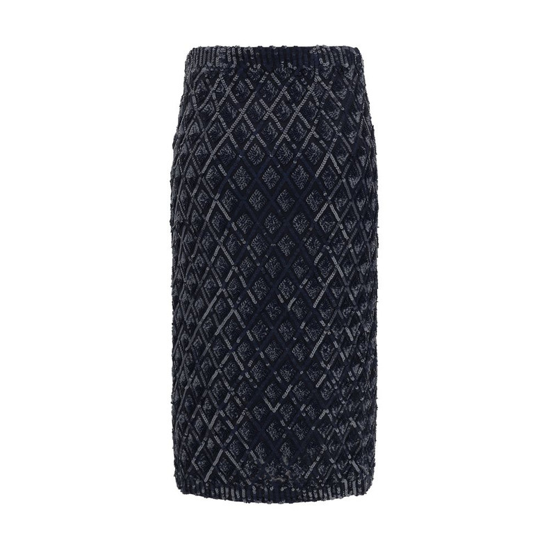 The Sequined midi Skirt by P.A.R.O.S.H. is a garment with a sparkling and sophisticated character, perfect for those looking for a glamorous look. The elasticated waistband ensures a comfortable and versatile fit, while the sequin diamond design adds a touch of originality and brightness to the model. The midi length lends understated elegance, making this skirt ideal for special events, elegant evenings or even for a bolder everyday look.