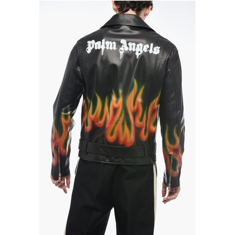 Palm Angels Leather BURNING Biker Jacket with Flames Motif