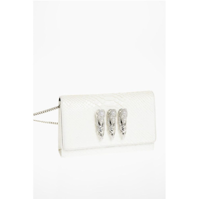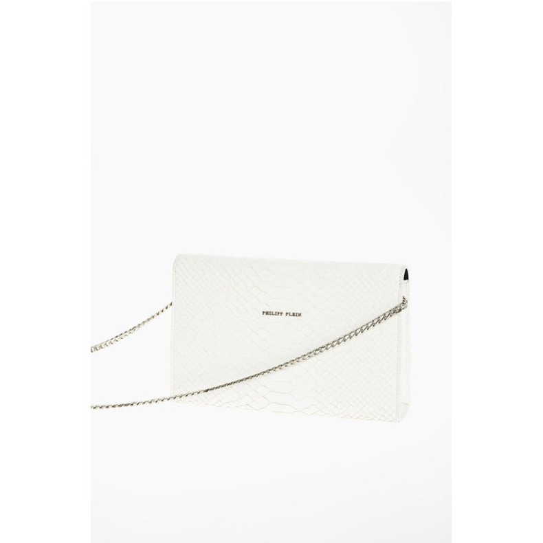 Philipp Plein Crocodile Effect Leather Clutch with Claw Rings