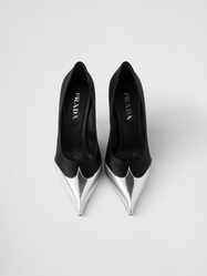 Prada Black Satin And Metallic Silver Leather Pumps