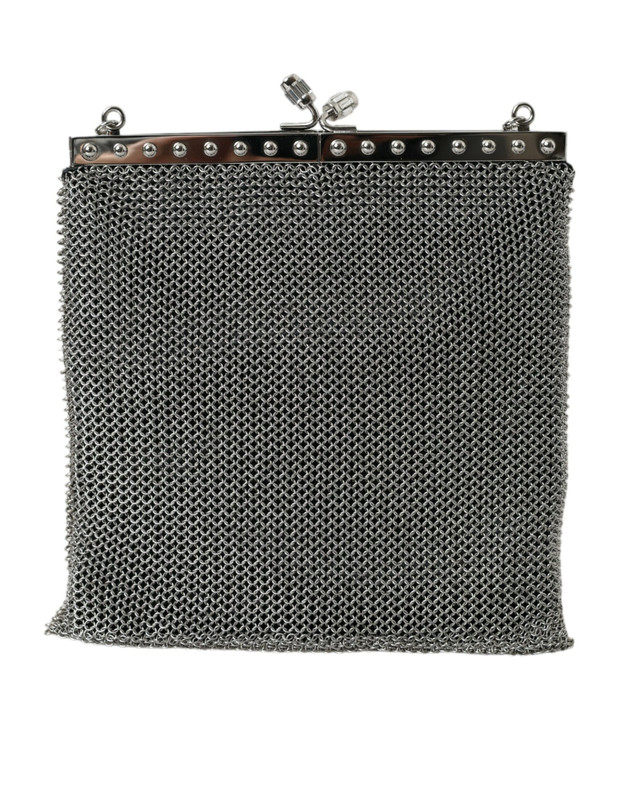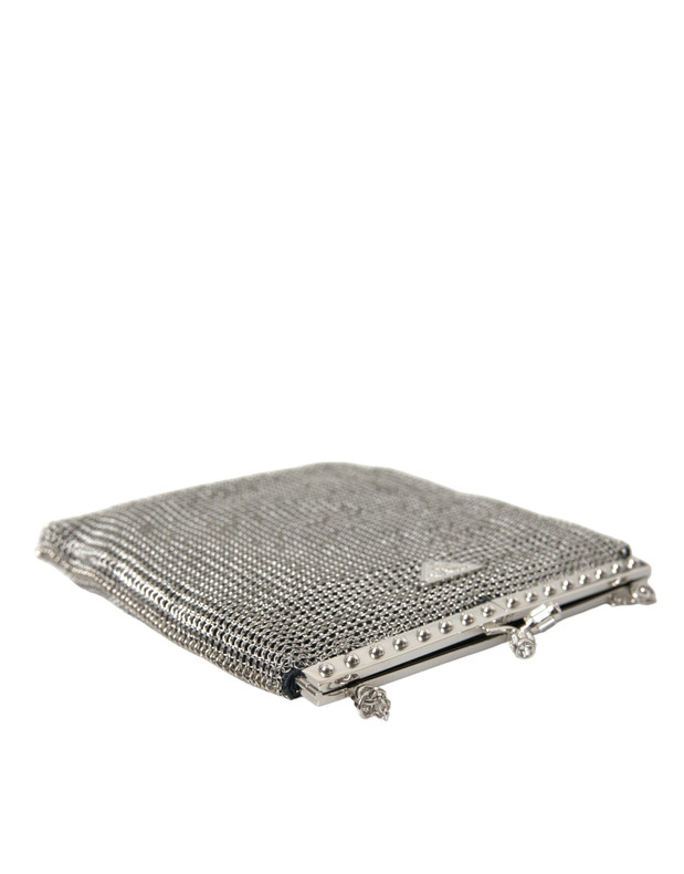 Prada Elegant Silver Mesh Shoulder Evening Bag