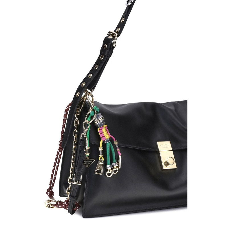 Prada’s large Soft Sound Shoulder Bag combines soft lines and refined details in a compact and functional design. Made of lightly grained leather, it is embellished with a metallic logo detail on the front and removable accessories that enrich the shoulder strap. The adjustable and removable tonal leather shoulder strap allows for versatile portability. The interlocking closure protects a lined interior, organized with two compartments, a zippered pocket and a patch pocket. An elegant accessory, ideal to accompany everyday life in style.