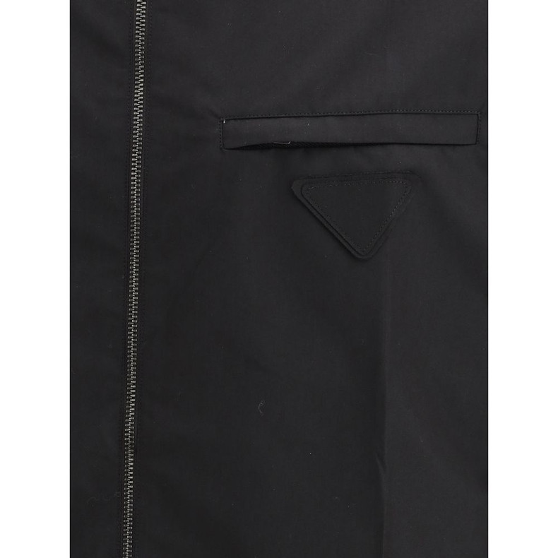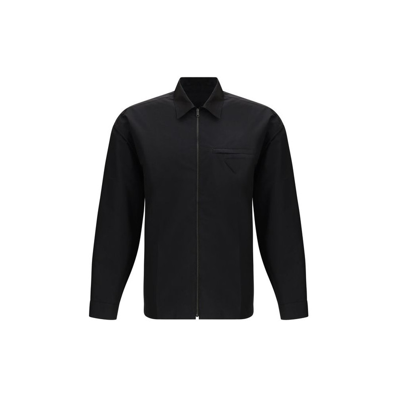 Cotton Shirt by Prada featuring a classic collar, a front zipper closure, a front zipper pocket, a patch with the brand’s iconic triangular froma, a monochrome pattern, and a regular fit.