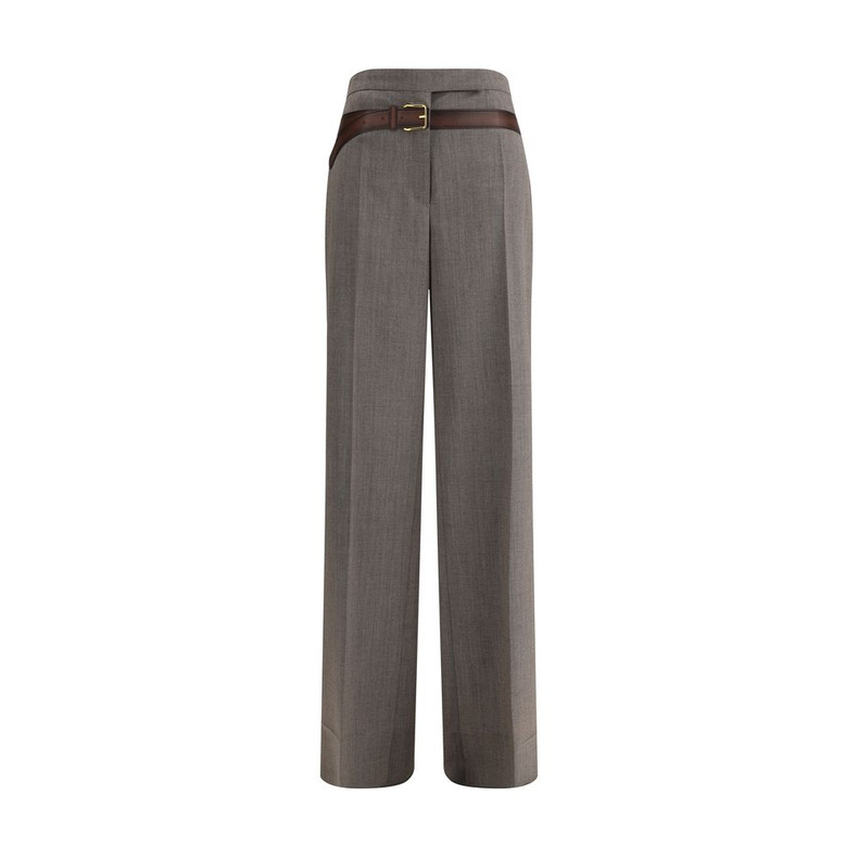 Prada’s Wool straight Pants combine sartorial rigor and innovative details. They feature an eyelet and zipper closure, two side pockets and two back welt pockets. The design is enhanced by a built-in faux belt, a distinctive element that adds a contemporary touch to an essential and versatile garment.