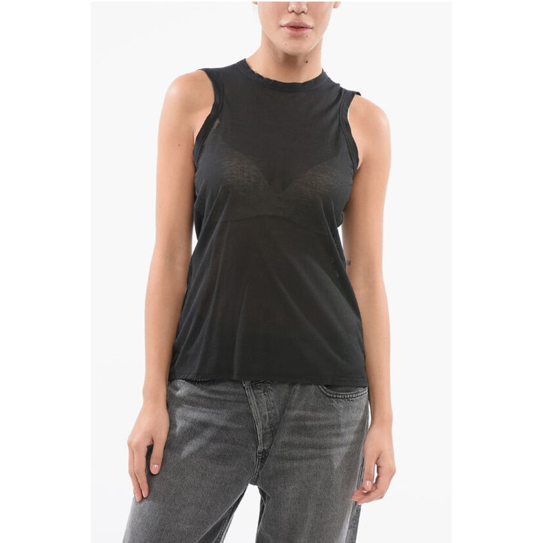 Roberto Collina Semi-Sheer Cotton Blend Crew Neck Top
