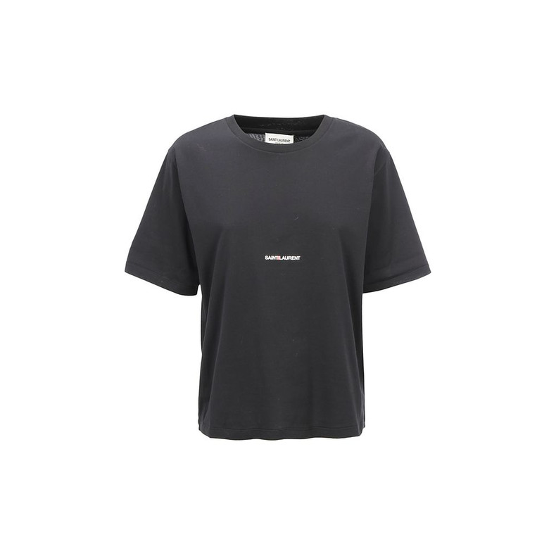 Cotton T-Shirt by Saint Laurent, ribbed crew neck, iconic brand monogram printed in contrast at front, regular fit.