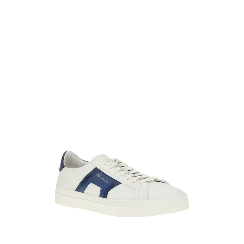 Santoni’s Leather Sneakers are a modern and refined interpretation of the classic men’s low top sneaker. Featuring logo leather detailing on the tongue and heel, they add a distinctive touch to the design. Double buckle-inspired details on the sides lend a bold accent, while the wide last and rounded toe ensure comfort and style. A lace-up closure and rubber box sole complete the look, with Santoni lettering engraved on the tread, a symbol of elegance and quality craftsmanship.
