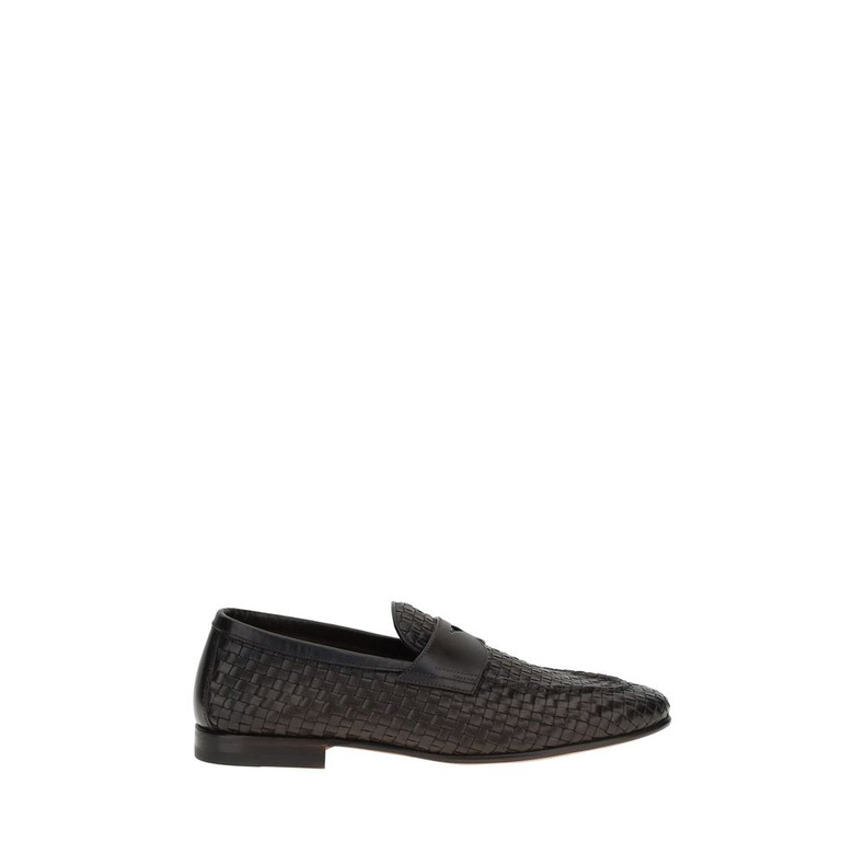 Santoni’s penny Loafers are a symbol of timeless elegance, with a sheer color gradient adding a unique and refined touch. The woven work and formal tapered silhouette give a sophisticated look, while the unlined interior ensures a comfortable and natural fit. The leather bottom with rubber half heel ensures stability and durability, complemented by the Santoni logo stamped on the insole, which emphasizes its authenticity and high-quality craftsmanship.