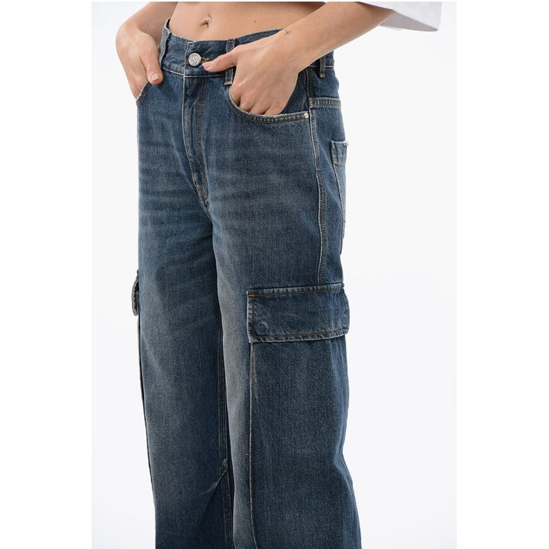 Stella McCartney Straight Leg Cargo Jeans with Frayed Hem 26cm