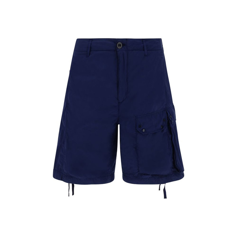 Shorts by Ten C, front zipper and button closure, two side welt pockets, back slit pocket, iconic brand monogram patch applied on back panel, adjustable drawstring hems, waist belt loops, two cargo pockets on side panel, monochrome pattern, regular fit.
