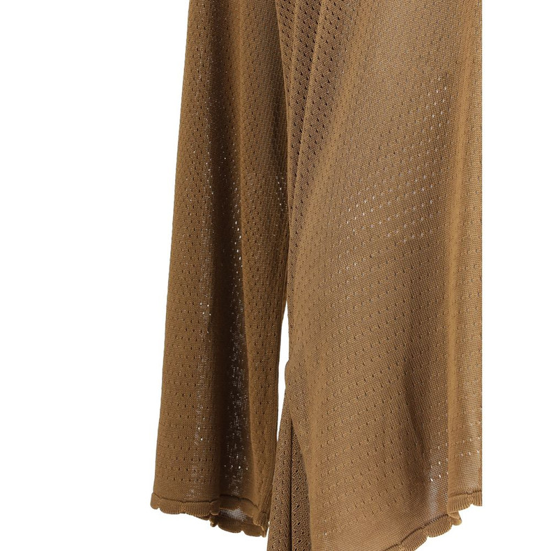 The openwork Mini Dress with Wide Sleeves from The Attic is a contemporary style statement. Featuring a V-neckline at the front and long, voluminous sleeves, this style is distinguished by its sophisticated design and asymmetrical silhouette, with the back panel longer than the front. Two wide side sashes, which can be knotted and passed over the shoulder or worn as desired, add versatility and a contemporary sartorial accent. The perforated pattern gives the garment a sensual elegance, perfect for those who like to get noticed with sophistication .