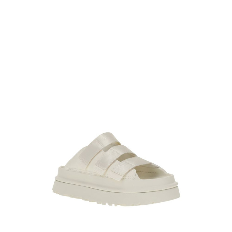 UGG’s Goldenglow Sandals combine comfort and style in a modern, casual design. Featuring a round toe and a practical Velcro strap closure, they ensure an adjustable and stable fit. The platform sole gives height without sacrificing comfort, while the branded insole completes the model with an iconic touch.