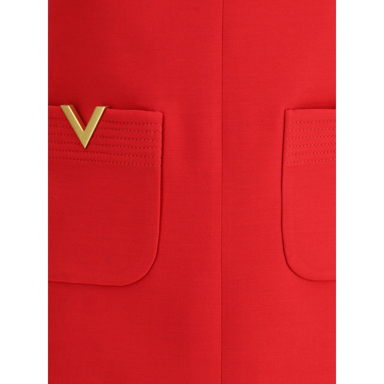 Valentino’s virgin wool Dress is a short-sleeved mini style with a back closure via a concealed zipper, ensuring a clean line. Two applied welt pockets on the front are embellished with the brand’s signature contrasting VLogo detail. Two tone-on-tone bows applied on the front highlight an elegant cut-out detail, giving a sophisticated and modern touch to the overall design.