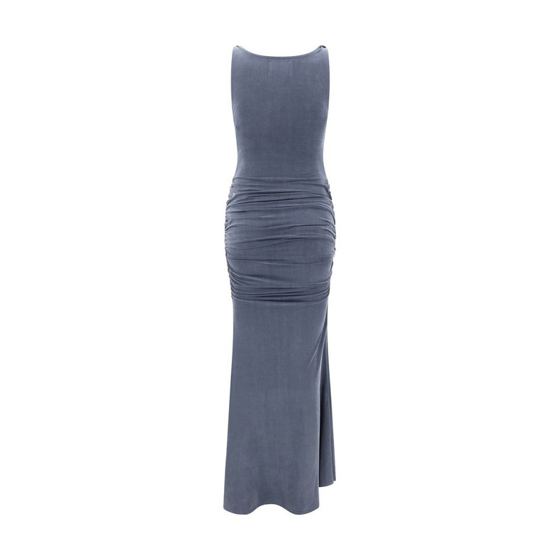 Vivienne Westwood’s Liz Long Dress is an elegant and sensual garment with a sleeveless, draped pattern that hugs the form in a highly sophisticated way. Drapes create a fluid, enveloping effect, accentuating the silhouette in a refined way. The cowl neckline adds a distinctive and modern touch, making the dress perfect for special occasions that call for a bold and elegant look.