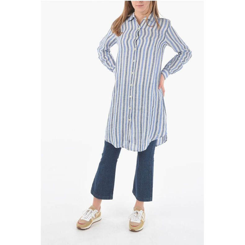 Woolrich Awning Striped Linen Shirt with Buttons on the Sleeve